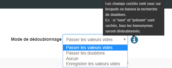 Le dédoublonnage s’effectue sur les champs qui sont cochés dans les différentes colonnes.